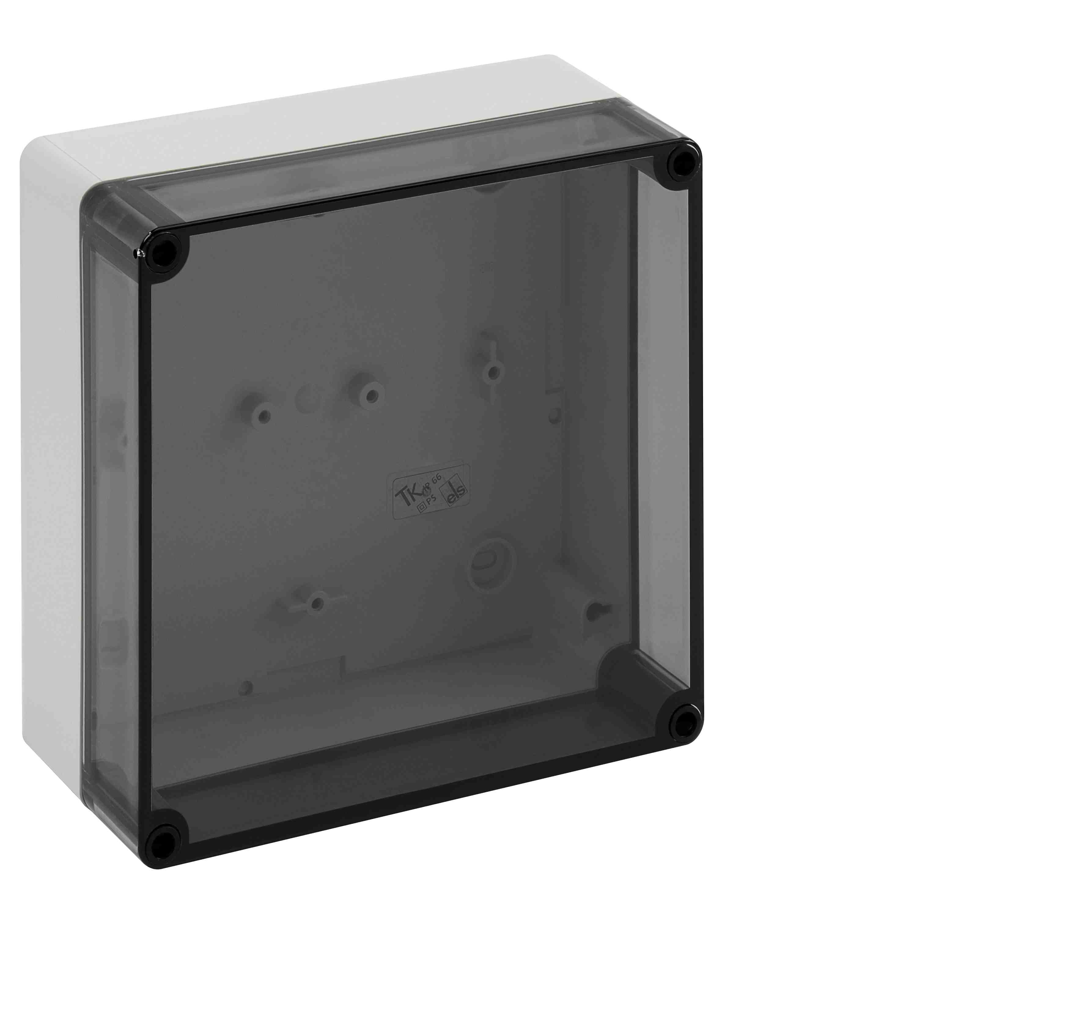 Prázdná skříň, se stupněm krytí IP66, polystyren, Ui=690V AC, Ui=1000V DC, Vnitřní místa pro připevnění, pro standardní instalace ve vnitřním prostoru, Krabice: polystyren, šedá, Víko: polykarbonát, transparenti, hladké boky Rozměry: 182 x 180 x 84 mm