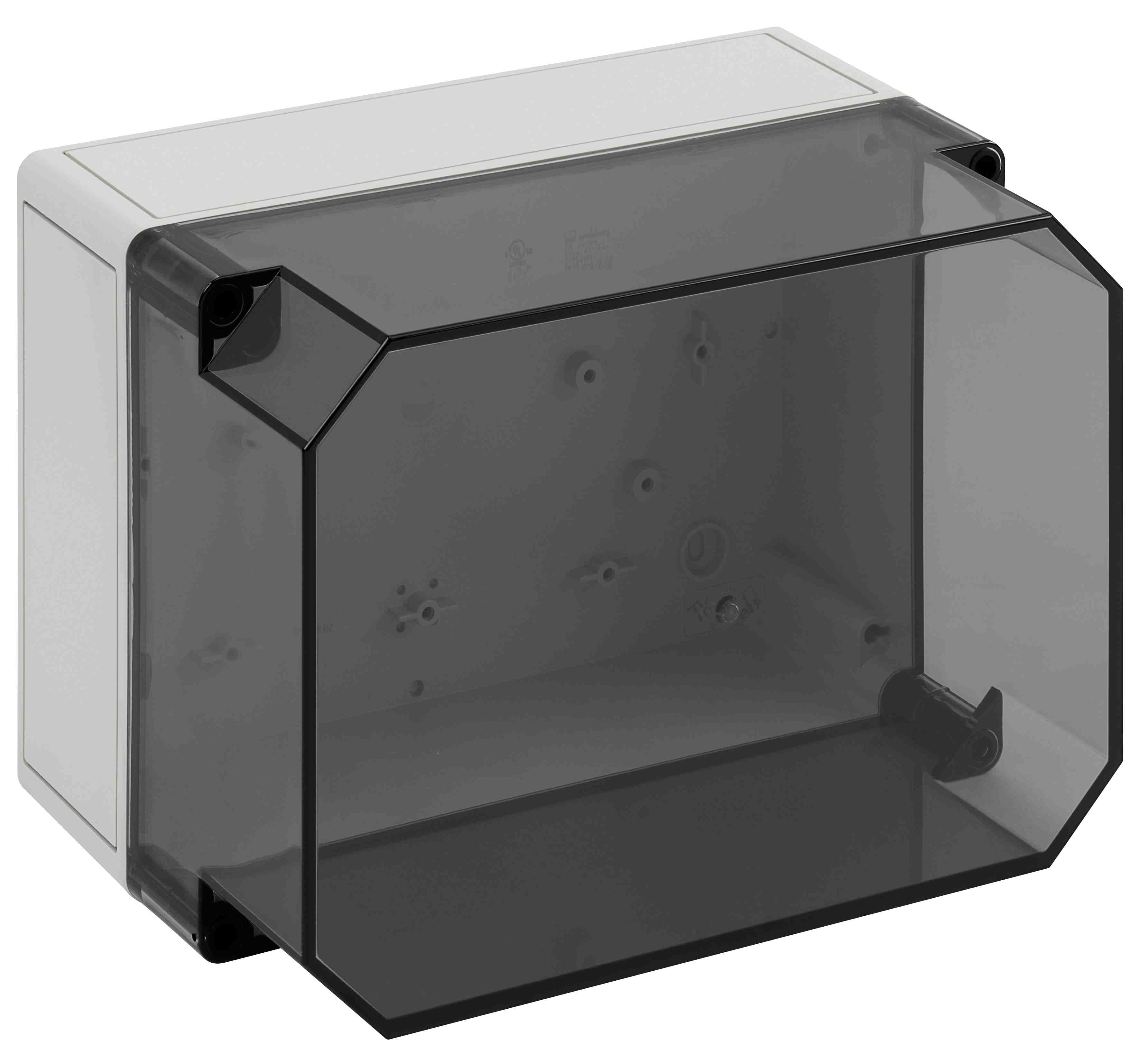Prázdná skříň, se stupněm krytí IP66, polystyren, Ui=690V AC, Ui=1000V DC, Vnitřní místa pro připevnění, pro standardní instalace ve vnitřním prostoru, Krabice: polystyren, šedá, Víko: polykarbonát, transparenti, hladké boky Rozměry: 254 x 180 x 165 mm