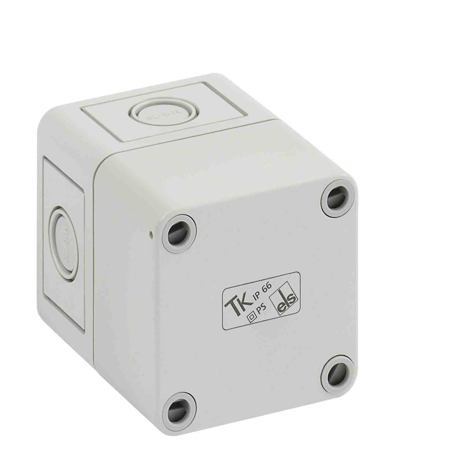 Prázdná skříň, se stupněm krytí IP66, polystyren, Ui=690V AC, Ui=1000V DC, Vnitřní místa pro připevnění, pro standardní instalace ve vnitřním prostoru, Krabice: polystyren, šedá, Víko: polystyren, šedá, Vyrážecí membrány, M16/M20, (4 bočně) Rozměry: 65 x 65 x 81 mm