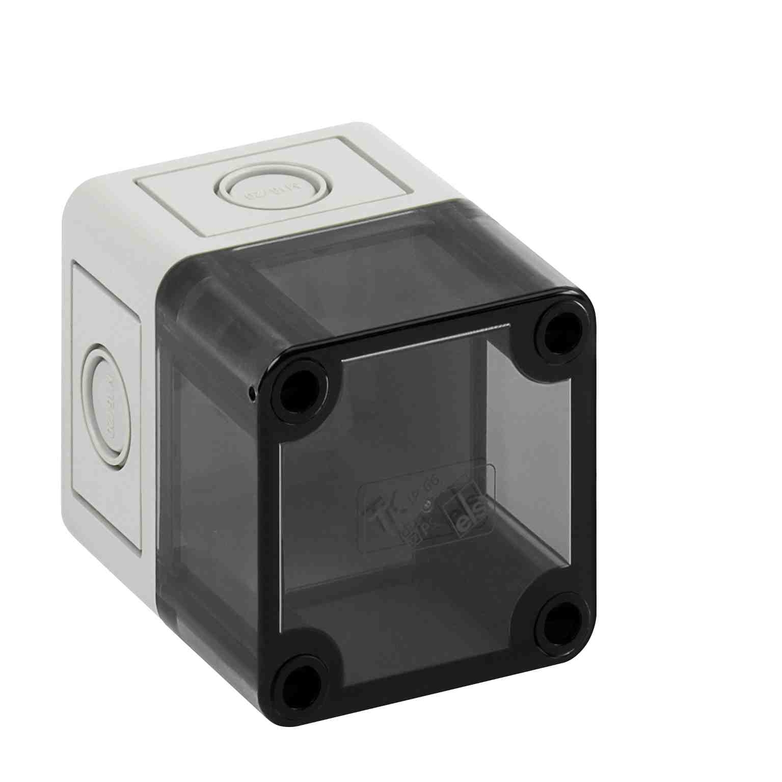 Prázdná skříň, se stupněm krytí IP66, polystyren, Ui=690V AC, Ui=1000V DC, Vnitřní místa pro připevnění, pro standardní instalace ve vnitřním prostoru, Krabice: polystyren, šedá, Víko: polykarbonát, transparenti, Vyrážecí membrány, M16/M20, (4 bočně) Rozměry: 65 x 65 x 81 mm