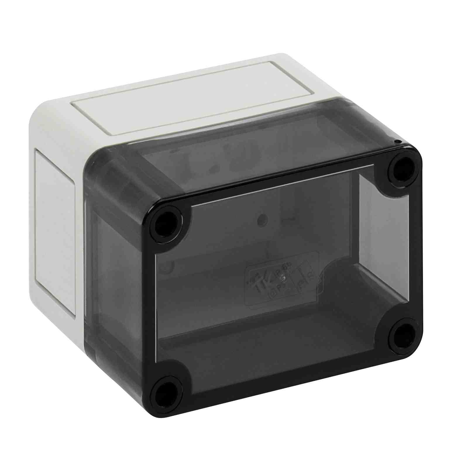 Prázdná skříň, se stupněm krytí IP66, polystyren, Ui=690V AC, Ui=1000V DC, Vnitřní místa pro připevnění, pro standardní instalace ve vnitřním prostoru, Krabice: polystyren, šedá, Víko: polykarbonát, transparenti, hladké boky Rozměry: 94 x 65 x 81 mm