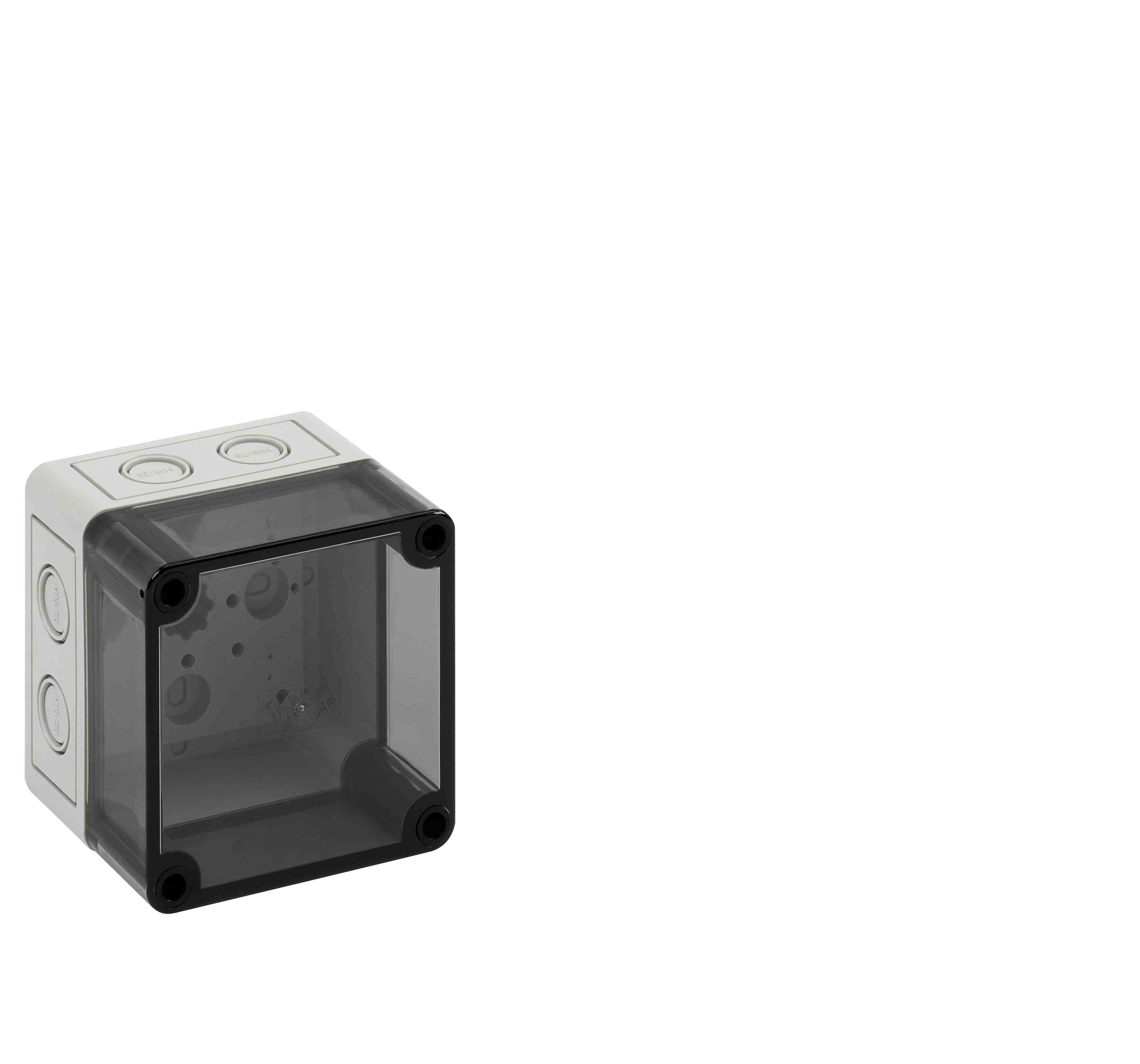 Prázdná skříň, se stupněm krytí IP66, polystyren, Ui=690V AC, Ui=1000V DC, Vnitřní místa pro připevnění, pro standardní instalace ve vnitřním prostoru, Krabice: polystyren, šedá, Víko: polykarbonát, transparenti, Vyrážecí membrány, M16/M20, (7 bočně) Rozměry: 94 x 94 x 81 mm