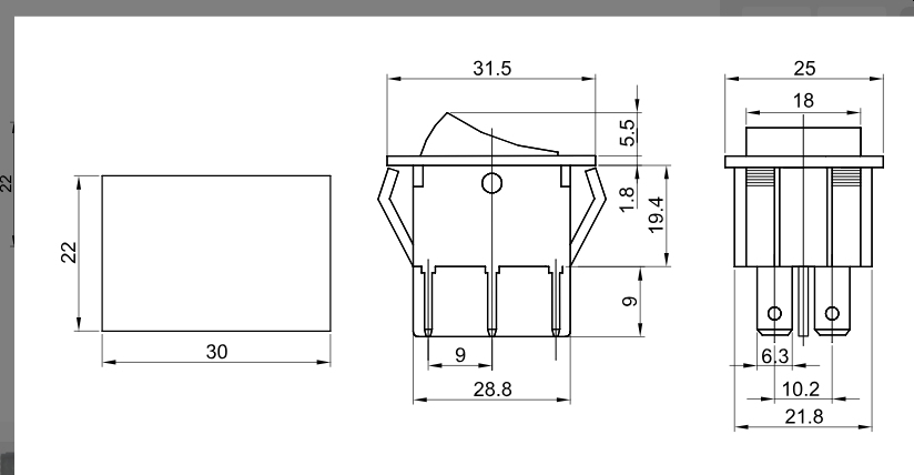 Spínač TES-53 kolébkový , 0-1, 16A/230V
