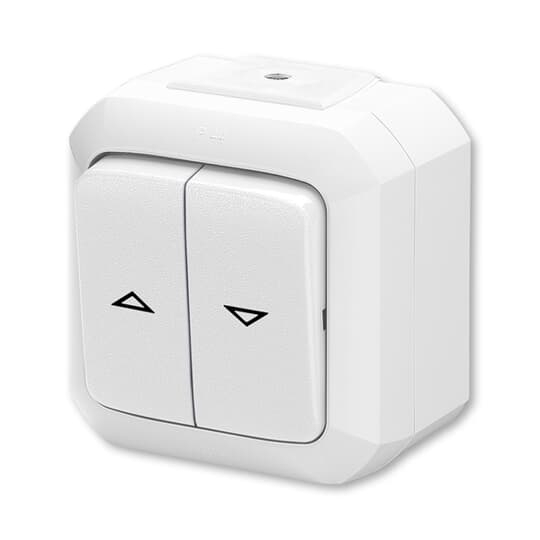 Spínač žaluziový jednopólový, řazení 1+1 s blokováním, IP54; bílá   Vhodné pro designy z vypínačových řad ABB : Variant+   Objednací číslo : 3558N-C89510 B