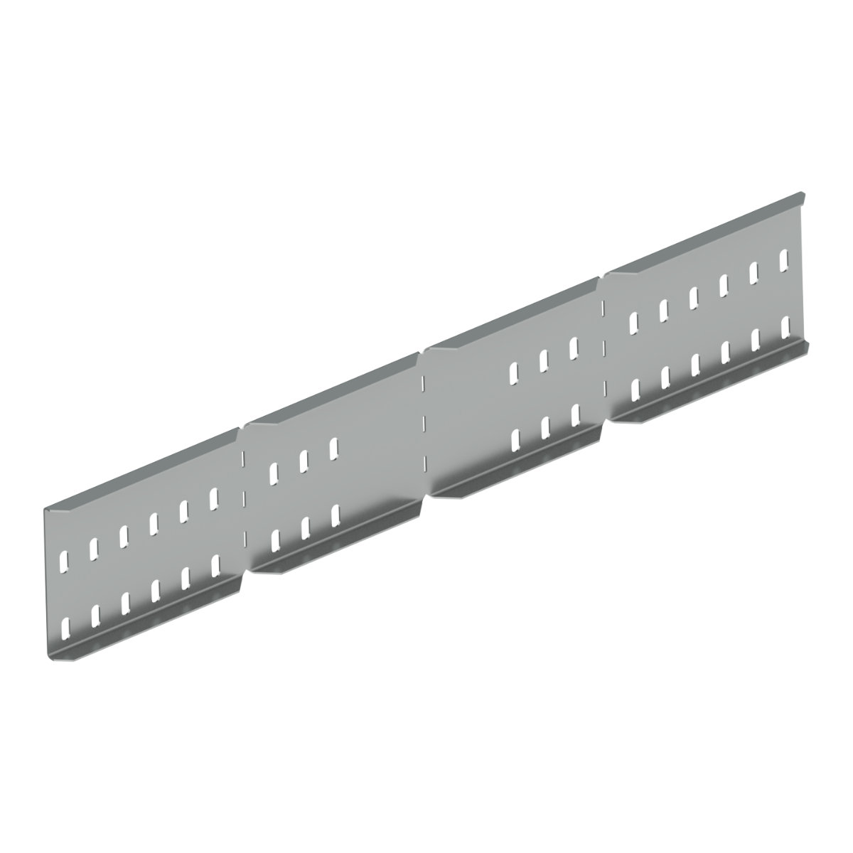 Vnější spojka kabelové lávky umožňující vytvoření odbočení pod různým úhlem, určena pro spojování lávek s výškou bočnice 110 mm současně s krátkou spojkou pro kabelové lávky vyráběné v provedení z nerezového materiálu