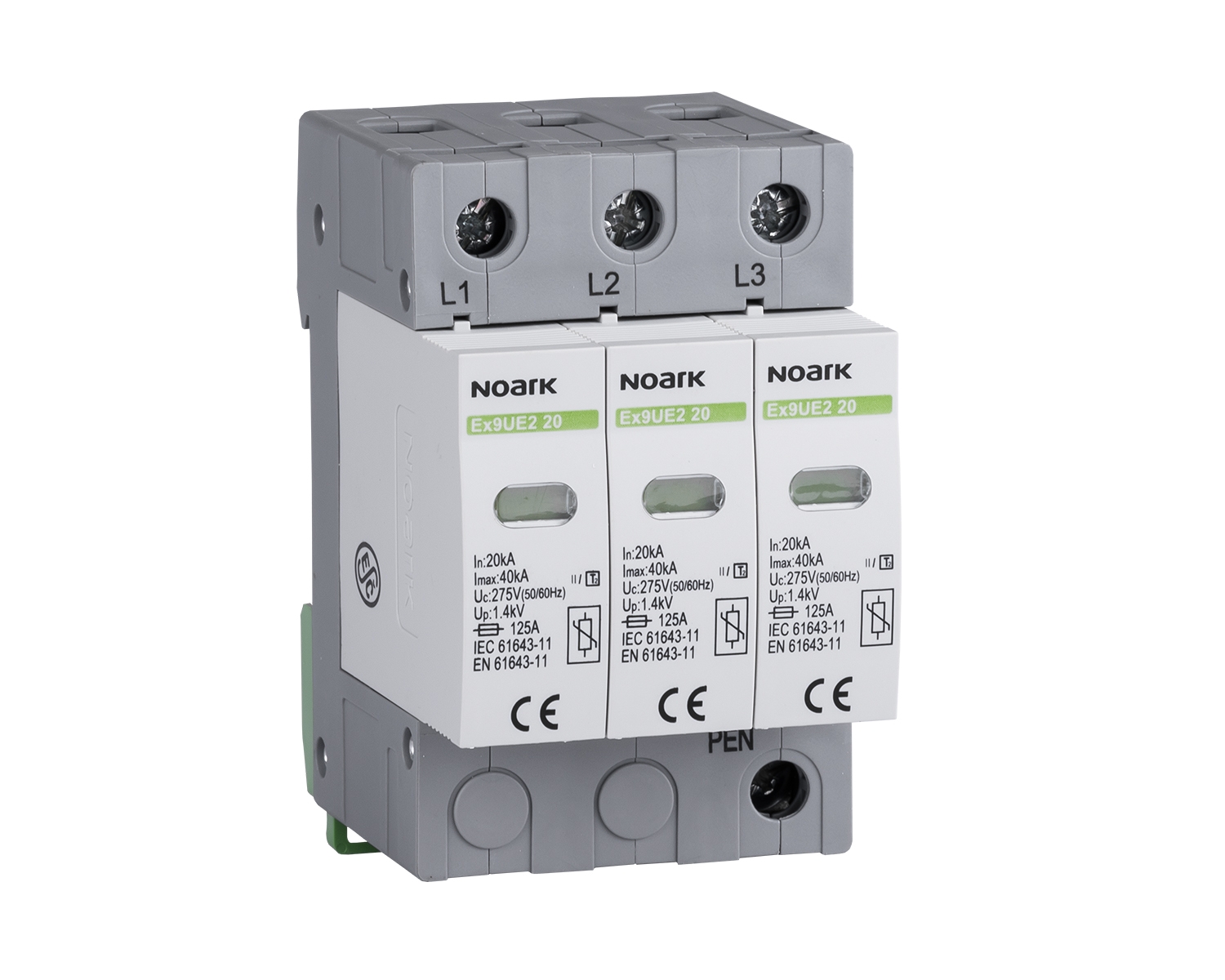 Svodič přepětí, třída 2 (C), In=20 kA, Uc=385 VAC, 3pól, se signalizačním kontaktem Ex9UE2 20R 3P 385 *103773 Noark