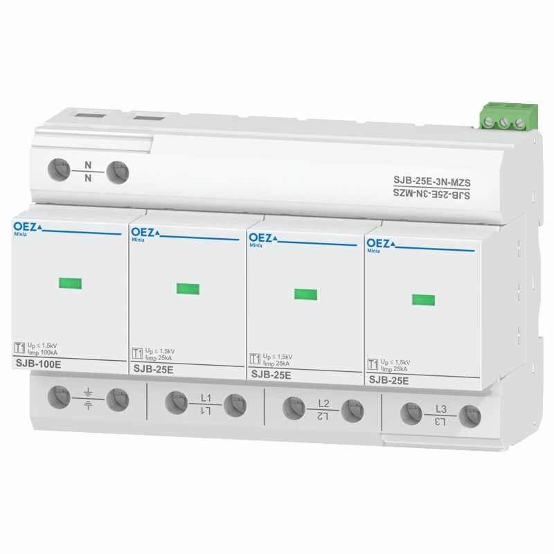 Svodič bleskových proudů SJB-25E-3N-MZS typ 1, Iimp 25 kA, Uc AC 350 V, zapojení 3+1, výměnné moduly, se signalizací, jiskřiště OEZ:38358