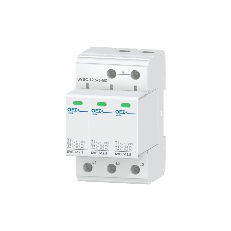Kombinovaný svodič bleskových proudů a přepětí SVBC-12,5-3-MZ typ 1+2, Iimp 12,5 kA, Uc AC 335 V, zapojení 3+0, výměnné moduly, varistor OEZ:40619