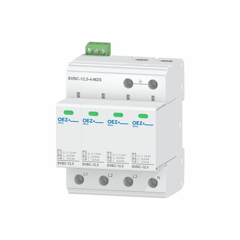 Kombinovaný svodič bleskových proudů a přepětí SVBC-12,5-4-MZS typ 1+2, Iimp 12,5 kA, Uc AC 335 V, zapojení 4+0, výměnné moduly, se signalizací, varistor OEZ:40624