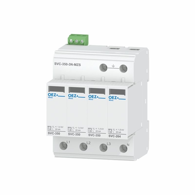 Svodič přepětí SVC-350-3N-MZS typ 2, Imax 40 kA, Uc AC 350 V, zapojení 3+1, výměnné moduly, se signalizací, varistor, jiskřiště OEZ:38368