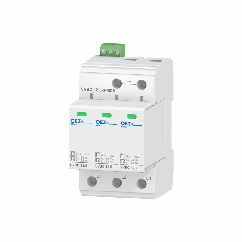Kombinovaný svodič bleskových proudů a přepětí SVBC-12,5-3-MZS typ 1+2, Iimp 12,5 kA, Uc AC 335 V, zapojení 3+0, výměnné moduly, se signalizací, varistor OEZ:40620