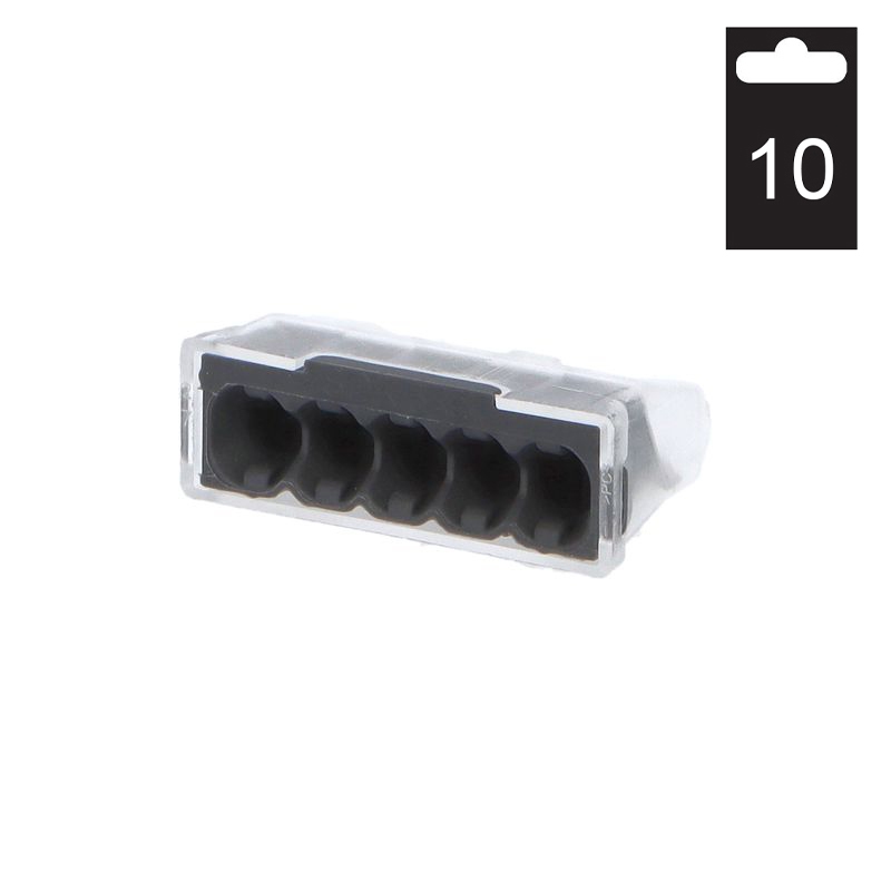 Svorka krabicová SDK 5/10 - bezšroubová, pevný vodič 5x0,5-2,5mm2, transparentní, balení v praktickém sáčku po 10ks.