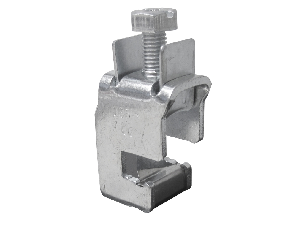 Svorka třmenová SK 185 F10 - pro měděné přípojnice výšky 10mm, průřez vodiče 35-185mm2, jmenovitý proud 448A, utahovací moment 24Nm, (šroub M10, šroubovák PZ 3, klíč 17).