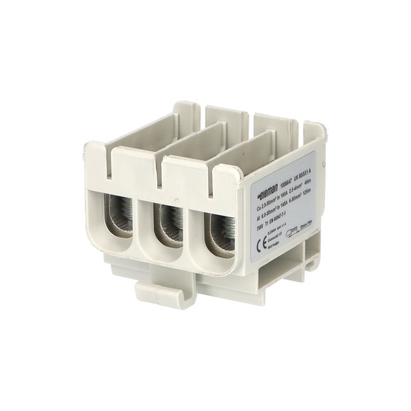 Svorka univerzální UK 50/3x1 A, 160A, 3pól., AL/CU, krytá, šedá, na DIN *1006647 eleman