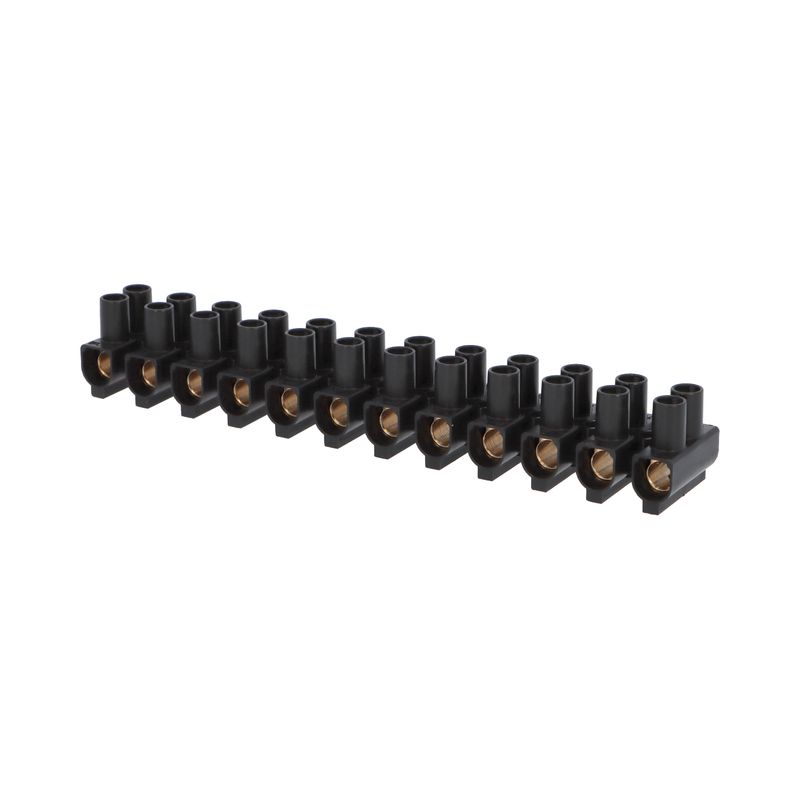 Svorkovnice instalační lámací EKL 4 BE-SVCE - 12 pólová, průřez vodiče 10-25mm2, barva černá, mosazná, napětí 750V, jmenovitý proud 101A, rozměr 187,3x28x30mm.