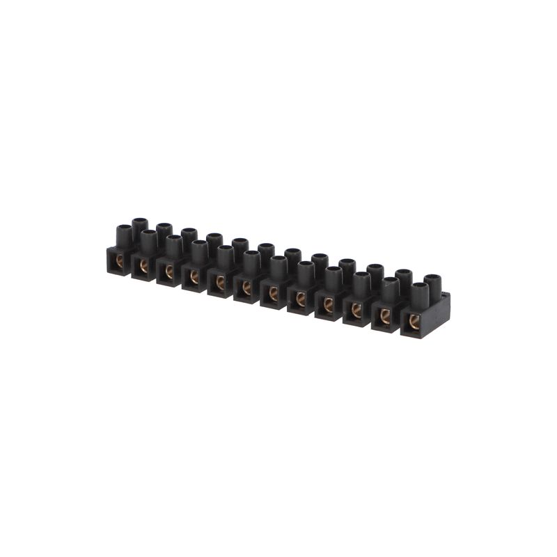 Svorkovnice přístrojová E-KL 2 - 12 pólová, průřez vodiče 2,5-10mm2, barva černá, mosazná, hranatá, napětí 400V, jmenovitý proud 57A.