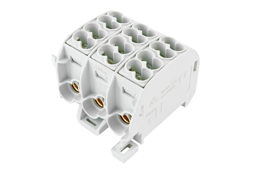 Svorkovnice rozbočovací HLAK 25//3 C L, 152A, 3pól., IP20, 1000V, 152A, 3-pólová, na 1 pól: 2x25mm2, 2x16mm2, CU, na DIN.