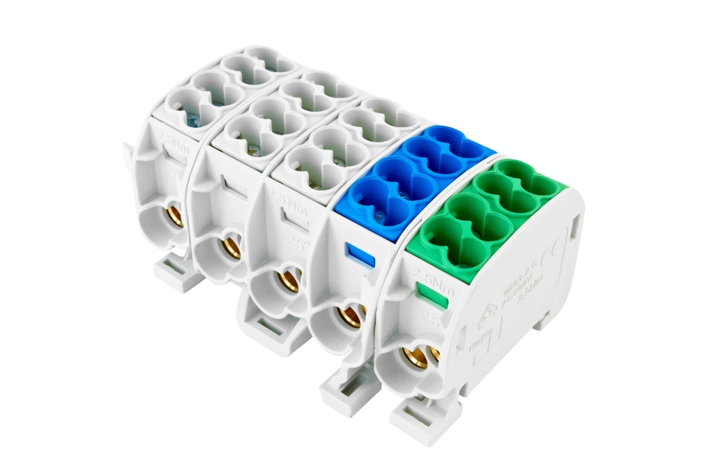 Svorkovnice rozbočovací HLAK 25//5 C PEN3L, 152A, 5pól., IP20, 1000V, 152A, 5-pólová, na 1 pól: 2x25mm2, 2x16mm2, CU, na DIN.