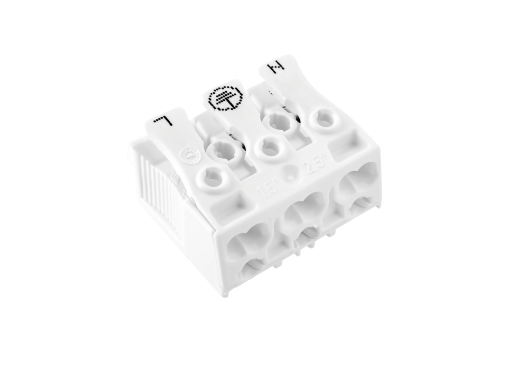 3-pólová svorkovnice pro průmyslová svítidla - SLK 3/3 (N-E-L), bezšroubové připojení vodičů, z PC (Polykarbonátu), bílá /88167527.