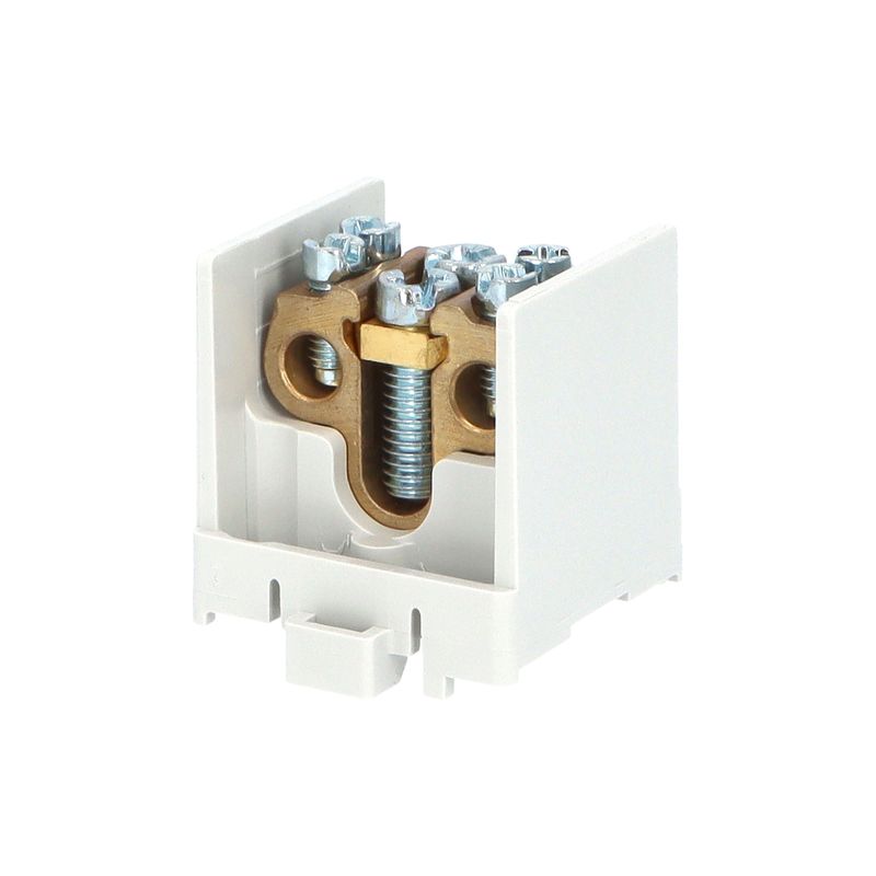 Otevřená 1-pólová svorka HAK/1/35, se vstupy 1x 35mm2 a výstupy 2x 25mm2.