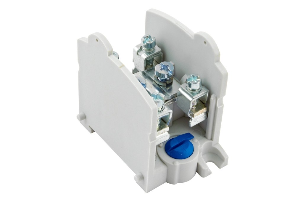 Svorkovnice stoupací OBL 25/16-1, krytá, montáž na DIN / panel, 1pólová, vstup 1x25mm2, výstup 4x16mm2, jmenovitý proud 101A, jmenovité napětí 750V, rozměry: 61x38x73mm, krytí IP10, barva modrá.