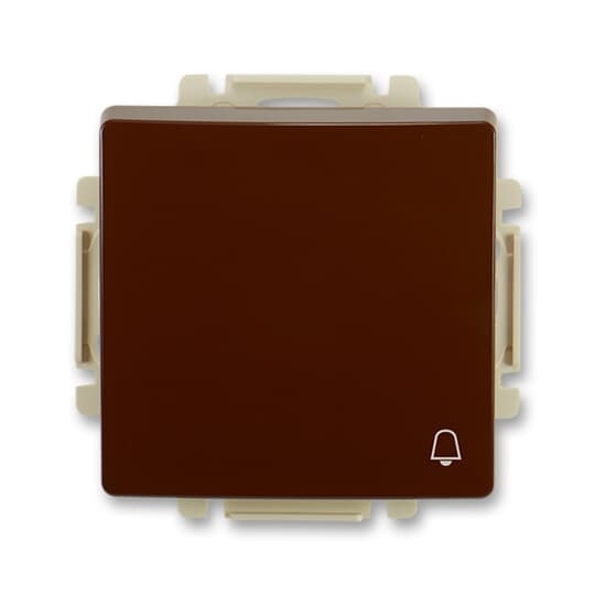 Ovládač tlačítkový zapínací, s krytem, se symbolem zvonku, řaz. 1/0; hnědá   Vhodné pro designy z vypínačových řad ABB : G   Objednací číslo : 3557G-A80343 H1