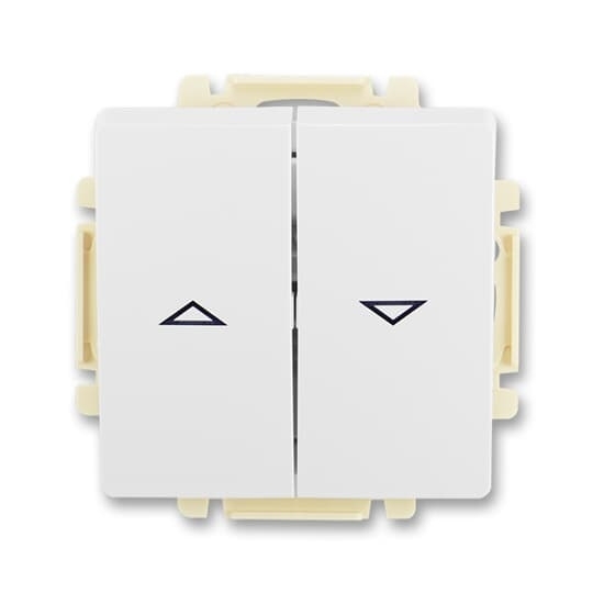 Ovládač žaluziový jednopólový (1/0+1/0 s blokováním), s krytem; jasně bílá   Vhodné pro designy z vypínačových řad ABB : G,J   Objednací číslo : 3557G-A88340 B1