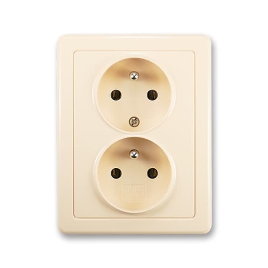 Zásuvka dvojnásobná s ochrannými kolíky; krémová   Vhodné pro designy z vypínačových řad ABB : G   Objednací číslo : 5512G-C02349 C1