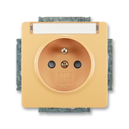 Zásuvka jednonásobná s ochr. kolíkem, s clonkami, s popis. polem; béžová Vhodné pro designy z vypínačových řad ABB : G Objednací číslo : 5518G-A02352 D1