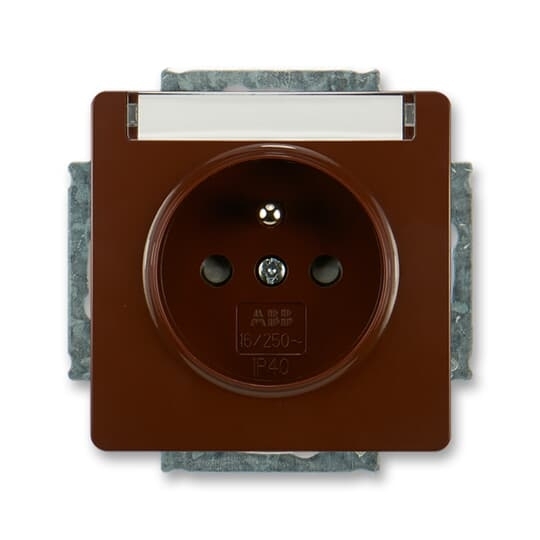 Swing® 5518G-A02352 H1 zásuvka jednonásobná s ochr. kolíkem, s clonkami, s popis. polem barva hnědá *ABB