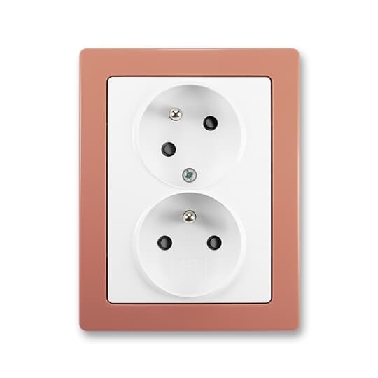 Zásuvka dvojnásobná s ochr. kolíky, s clonkami, s natočenou dutinou; jasně bílá/cihlová Vhodné pro designy z vypínačových řad ABB : J Objednací číslo : 5513J-C02357 B1R3