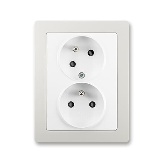 Zásuvka dvojnásobná s ochr. kolíky, s clonkami, s natočenou dutinou; jasně bílá/světle šedá Vhodné pro designy z vypínačových řad ABB : J Objednací číslo : 5513J-C02357 B1S1