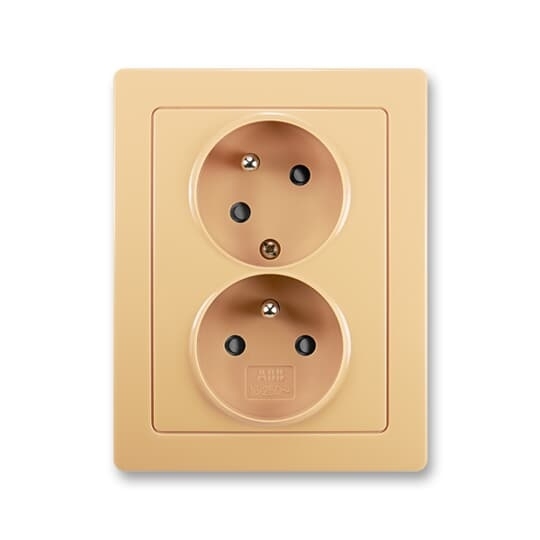 Zásuvka dvojnásobná s ochr. kolíky, s clonkami, s natočenou dutinou; béžová   Vhodné pro designy z vypínačových řad ABB : J   Objednací číslo : 5513J-C02357 D1