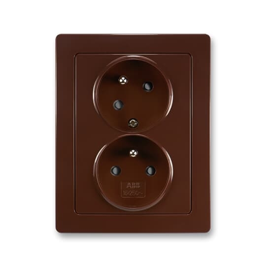 Zásuvka dvojnásobná s ochr. kolíky, s clonkami, s natočenou dutinou; hnědá Vhodné pro designy z vypínačových řad ABB : J Objednací číslo : 5513J-C02357 H1