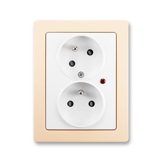 Zásuvka 2násobná s natoč. dutinou, s přep. ochr., s optickou sig.; jasně bílá/krémová Vhodné pro designy z vypínačových řad ABB : J Objednací číslo : 5593J-C02357 B1C1