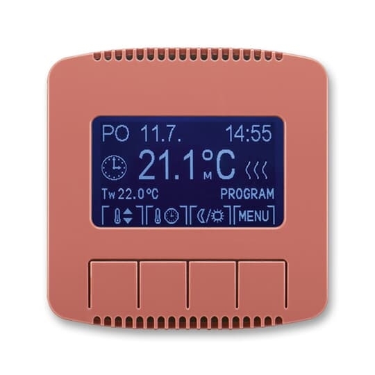 Termostat univerzální programovatelný (ovládací jednotka); vřesová červená   Vhodné pro designy z vypínačových řad ABB : T   Objednací číslo : 3292A-A10301 R2