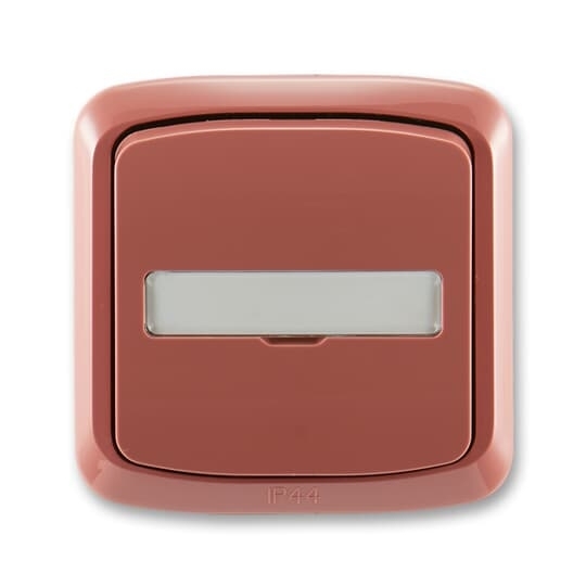 Ovládač zapínací kompl., s prosvětl. popis. polem, řaz. 1/0, 1/0So, IP44; vřesová červená   Vhodné pro designy z vypínačových řad ABB : T   Objednací číslo : 3558A-80920 R2