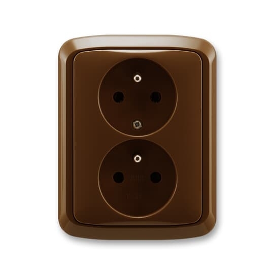 Zásuvka dvojnásobná s ochrannými kolíky; hnědá   Vhodné pro designy z vypínačových řad ABB : T   Objednací číslo : 5512A-2349 H
