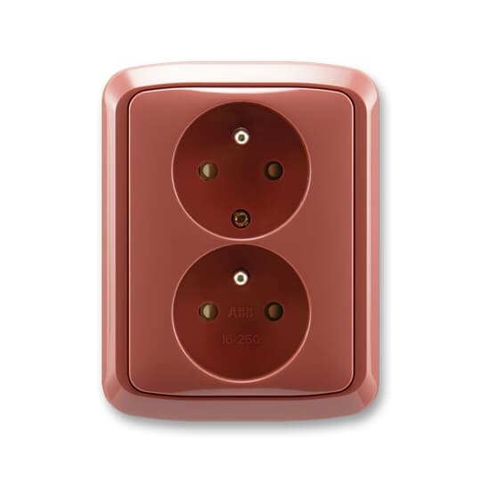 Zásuvka dvojnásobná s ochrannými kolíky, s clonkami; vřesová červená Vhodné pro designy z vypínačových řad ABB : T Objednací číslo : 5512A-2359 R2