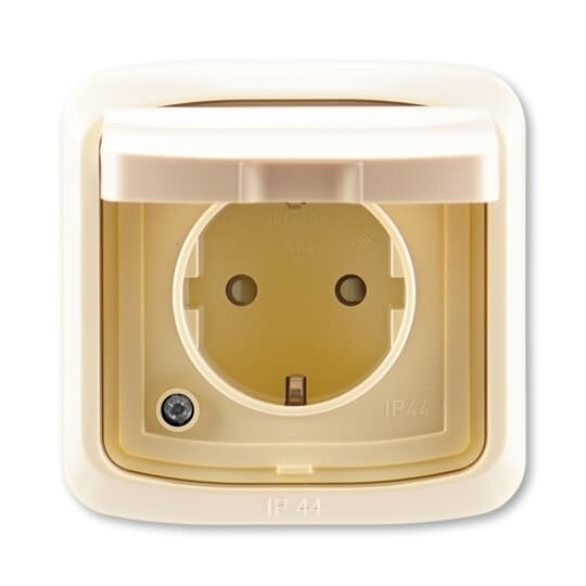 Tango 5518A-3999 C zásuvka jednonásobná podle DIN, s clonkami, víčkem, rámečkem, s drápky, IP44 barva slonová kost *ABB