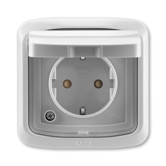 Tango 5518A-3999 S zásuvka jednonásobná podle DIN, s clonkami, víčkem, rámečkem, s drápky, IP44 barva šedá *ABB