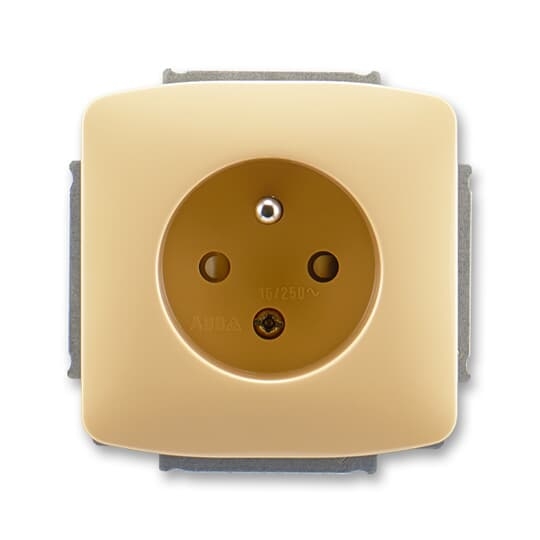 Zásuvka jednonásobná s ochranným kolíkem, s clonkami; béžová Vhodné pro designy z vypínačových řad ABB : T Objednací číslo : 5518A-A2359 D