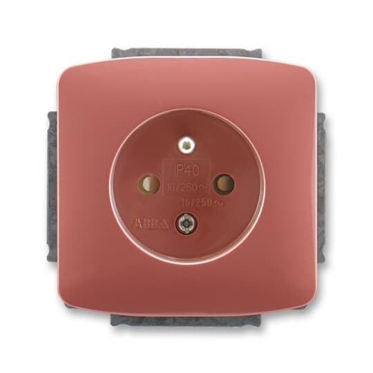 Zásuvka jednonásobná s ochranným kolíkem, s clonkami; vřesová červená   Vhodné pro designy z vypínačových řad ABB : T   Objednací číslo : 5518A-A2359 R2