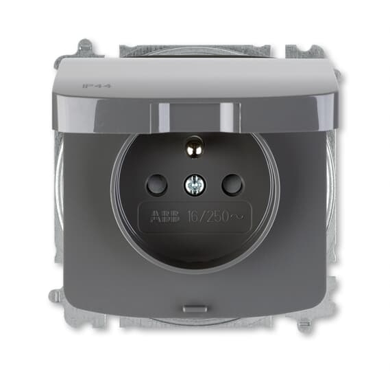 Zásuvka jednonásobná s clonkami, s víčkem, IP44, bezšroubové svorky; kouřová šedá   Vhodné pro designy z vypínačových řad ABB : T   Objednací číslo : 5519A-A02997 S2