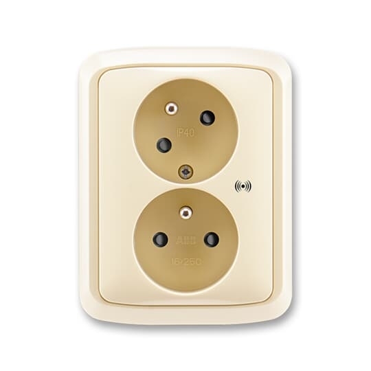 Zásuvka 2násobná s natoč. dutinou, s přep. ochr., s akustickou sig.; slonová kost Vhodné pro designy z vypínačových řad ABB : T Objednací číslo : 5583A-C02357 C