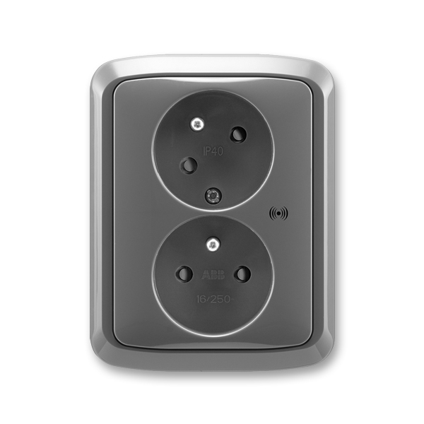Zásuvka 2násobná s natoč. dutinou, s přep. ochr., s akustickou sig.; kouřová šedá Vhodné pro designy z vypínačových řad ABB : T Objednací číslo : 5583A-C02357 S2