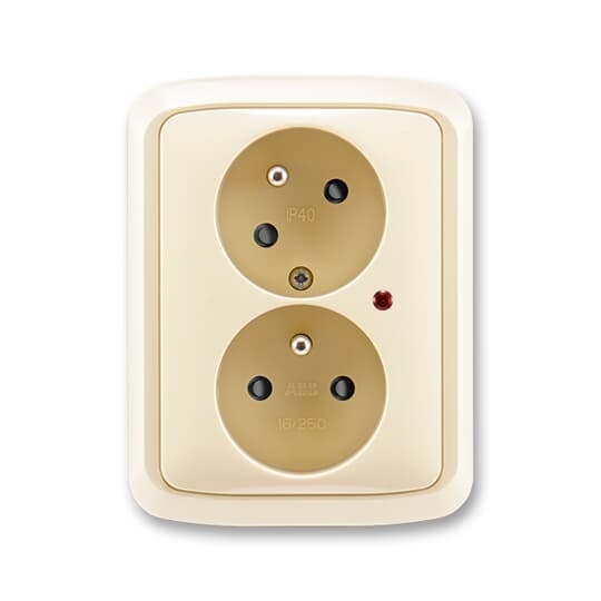 Zásuvka 2násobná s natoč. dutinou, s přep. ochr., s optickou sig.; slonová kost   Vhodné pro designy z vypínačových řad ABB : T   Objednací číslo : 5593A-C02357 C