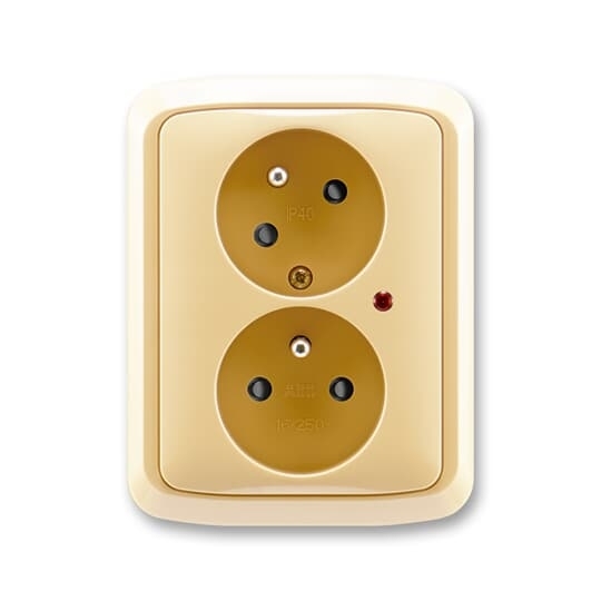 Zásuvka 2násobná s natoč. dutinou, s přep. ochr., s optickou sig.; béžová   Vhodné pro designy z vypínačových řad ABB : T   Objednací číslo : 5593A-C02357 D