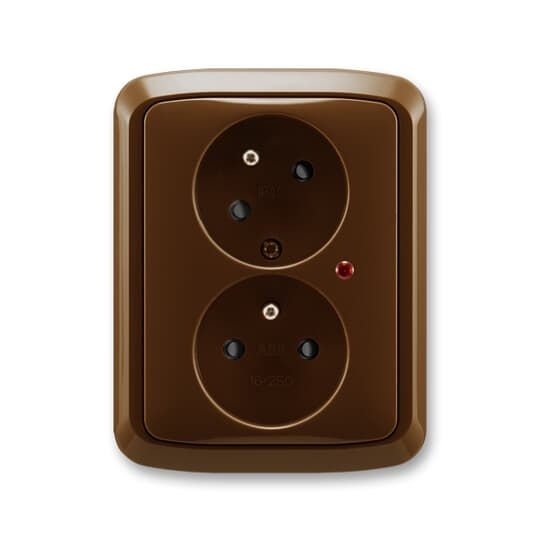 Zásuvka 2násobná s natoč. dutinou, s přep. ochr., s optickou sig.; hnědá Vhodné pro designy z vypínačových řad ABB : T Objednací číslo : 5593A-C02357 H