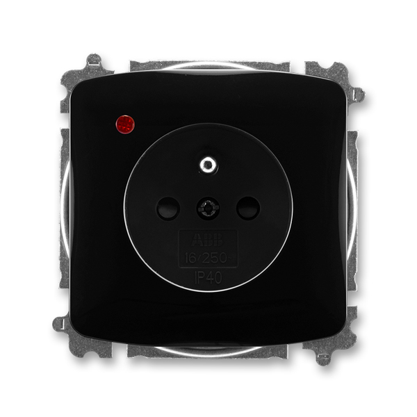 Zásuvka jednonásobná s clon., s ochranou před přepětím, bezšroub. sv.; černá Vhodné pro designy z vypínačových řad ABB : T Objednací číslo : 5599A-A02357 N